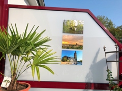 Habe die transparente Folie auf einen selbstgebauten Leuchtkasten geklebt und unter die Badezimmerdecke gehängt. Bewegungsmelder-gesteuert erinnert uns das strahlend hinterleuchtete Bild an unseren letzten Hausbooturlaub. Auf dem Foto ist die Hinterleuchtung aus, da sonst das Motiv "Folie mit Leuchtkasten" in der Helligkeit überzeichnet worden wäre.