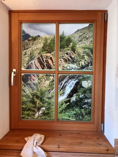 Da 10 cm hinter dem Fenster die Wand der Garage unseres Nachbarn steht, wollten wir eine schöne Erinnerung an unseren Ausflug dort sehen anstatt der Garagen-Dämmung