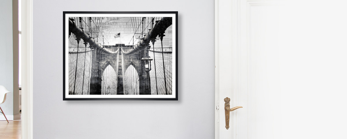BROOKLYN BRIDGE ART im weißen Holzrahmen. Setzen Sie Ihr neues Lieblingsmotiv dezent in Szene - wahlweise mit und ohne Passepartout.