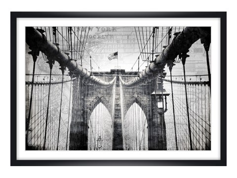 BROOKLYN BRIDGE ART im schwarzen Holzrahmen